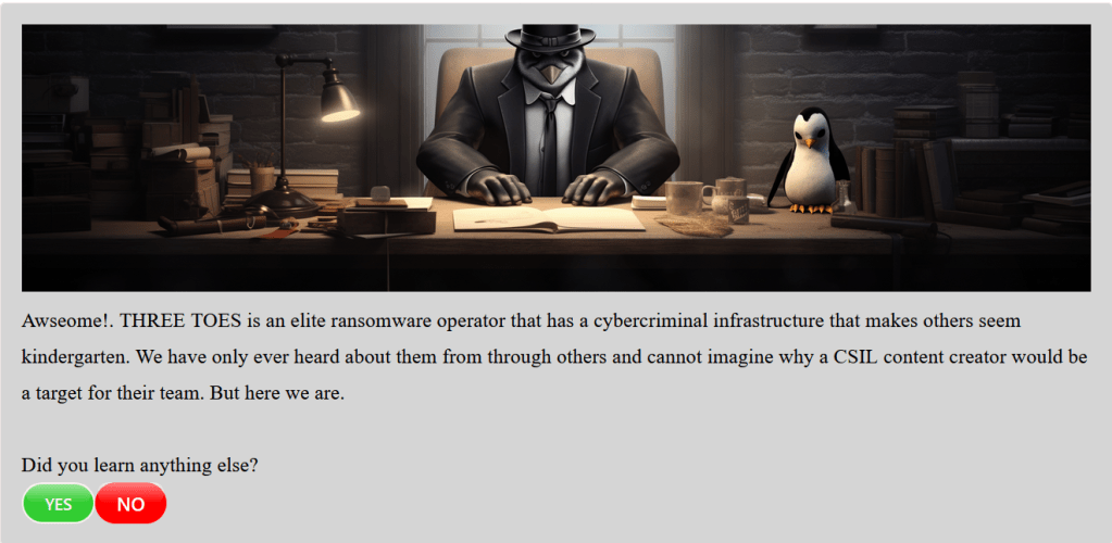 As discussed in Part One, I took part in the CSI Linux CTF event over Christmas. The CTF required writing up a report of findings, and I thought that it might be helpful to share the content of my report.