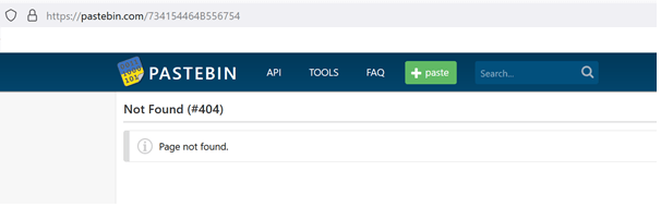 If you go to https://pastebin.com/734154464B556754, the page is not found, as shown below: