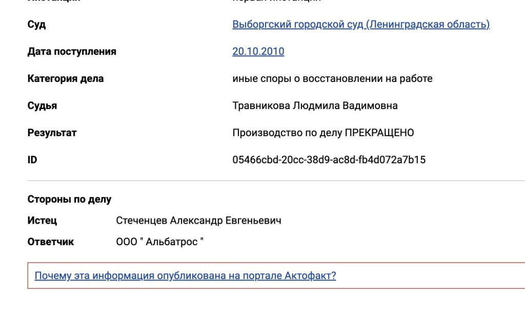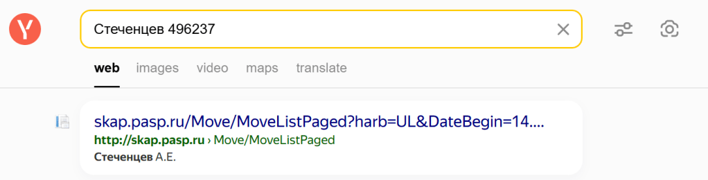 I therefore searched for Стеченцев 496237 in Yandex.
