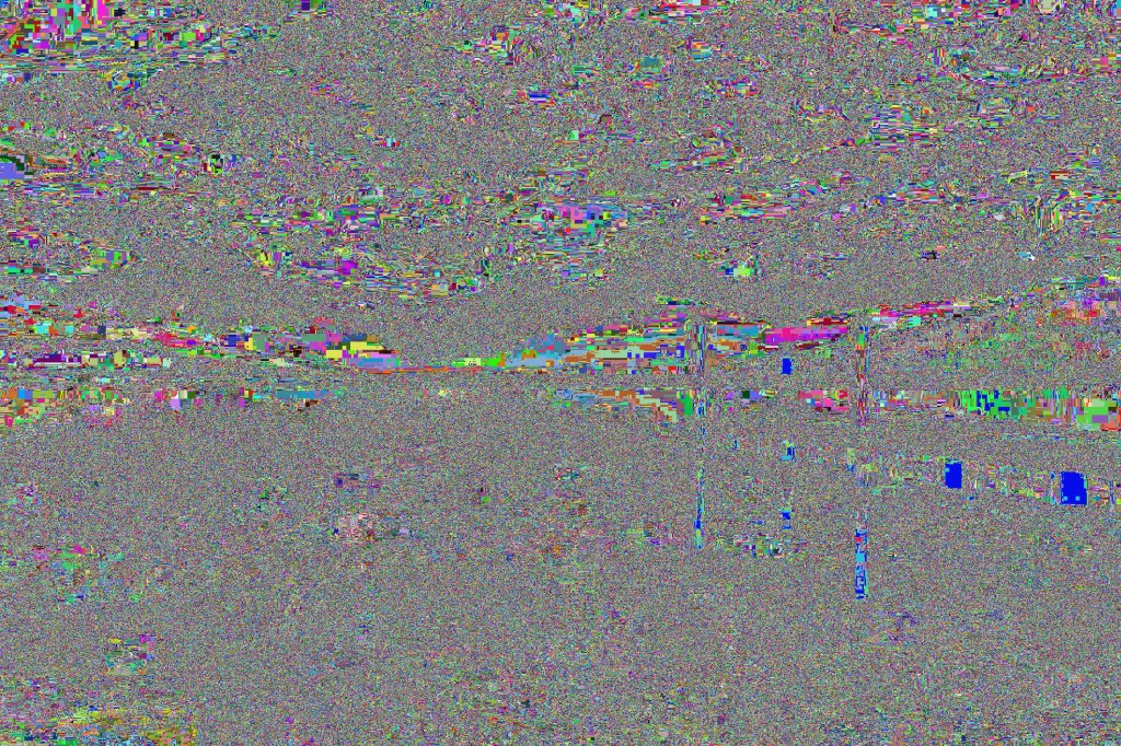 I then took a look at the image with a randomised colour palette. This is another method for looking for messages hidden in images. Sometimes images contain messages which are hidden in the use of a specific colour. In areas where there are large amounts of similar colours, this can be difficult to detect. By randomising the colour palette, this can help to make such messages easier to spot. This was done using CyberChef and the Randomize Colour Palette function. The image generated is below: