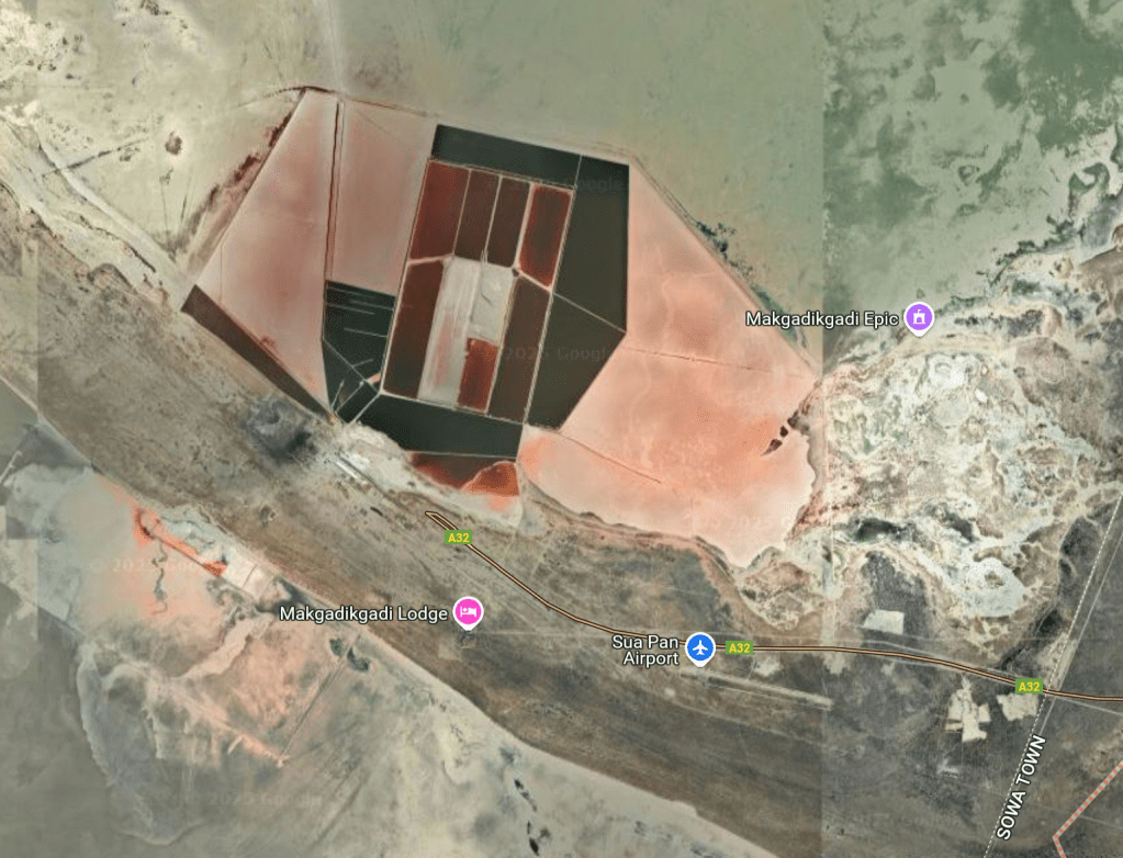 So, we know we are looking at the Sowa Pan, (or Sua Pan) in Botswana.