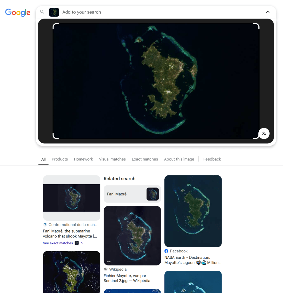 I tried the same approach as before, but I only got one matching image – which was a post someone had made about the challenge! Sadly nothing direct.