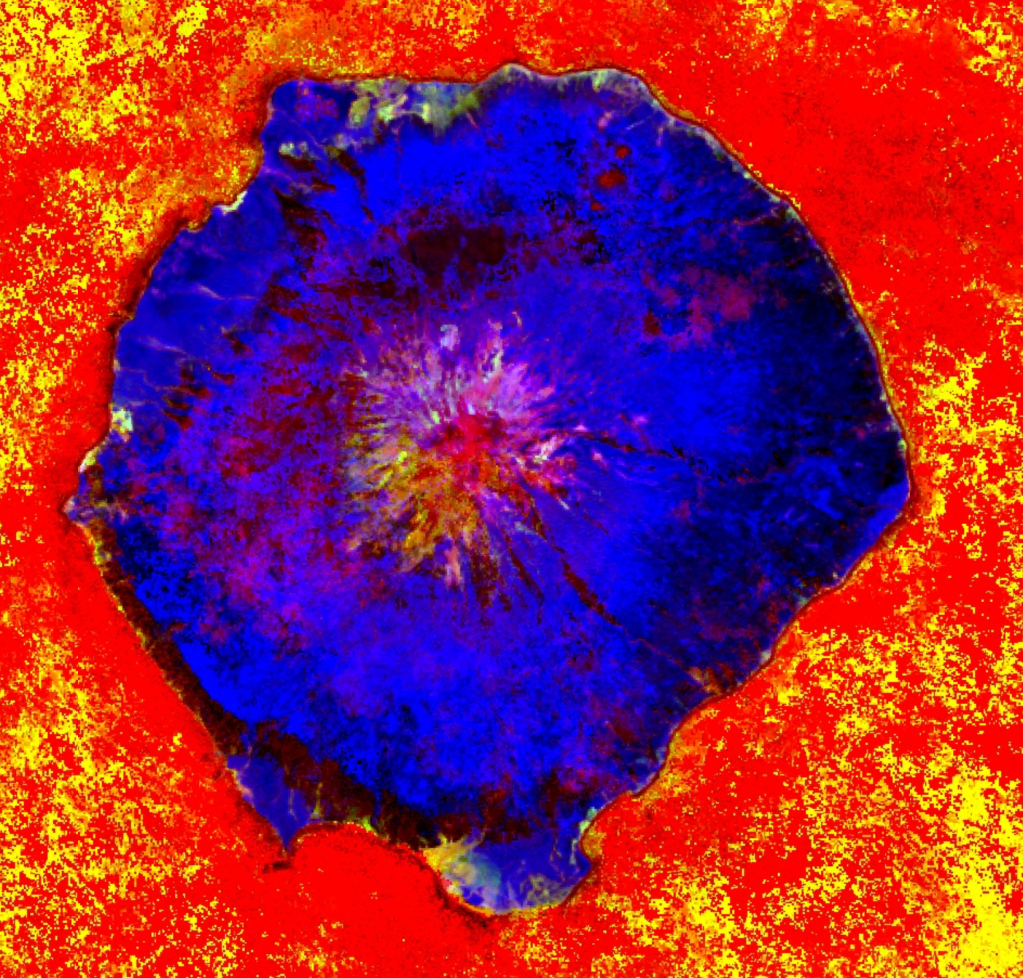The peak is quite clear in the image, but I thought that the red and yellow may indicate the sea, meaning that this would be coastal, or more likely an island, given that there is sea on at least two sides. I asked ChatGPT: