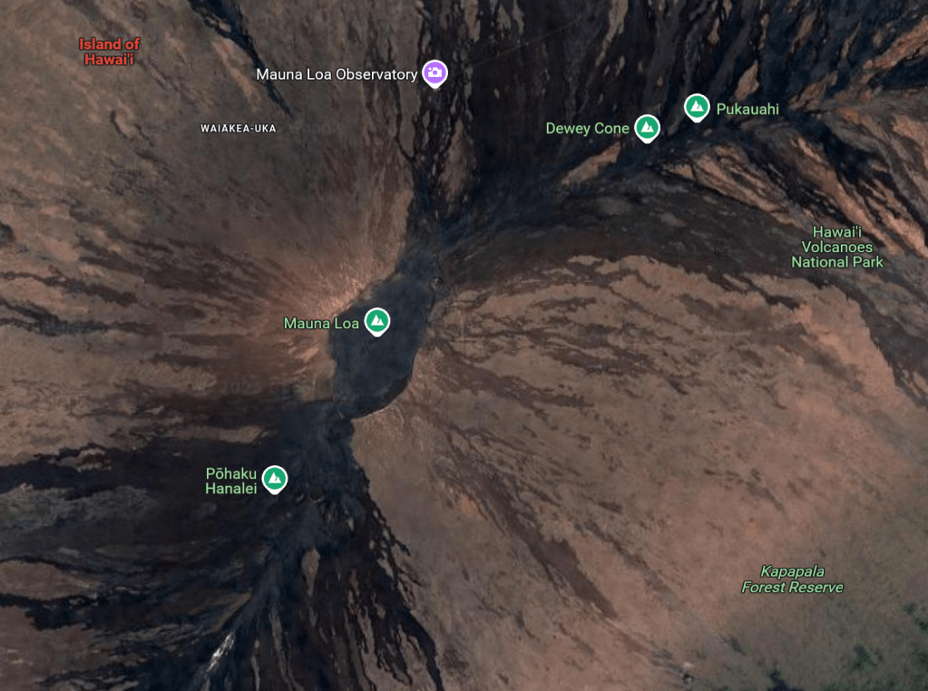This is a match. This is Big Island in Hawaii. If we change the view, we can see that the main peak is Mauna Loa: