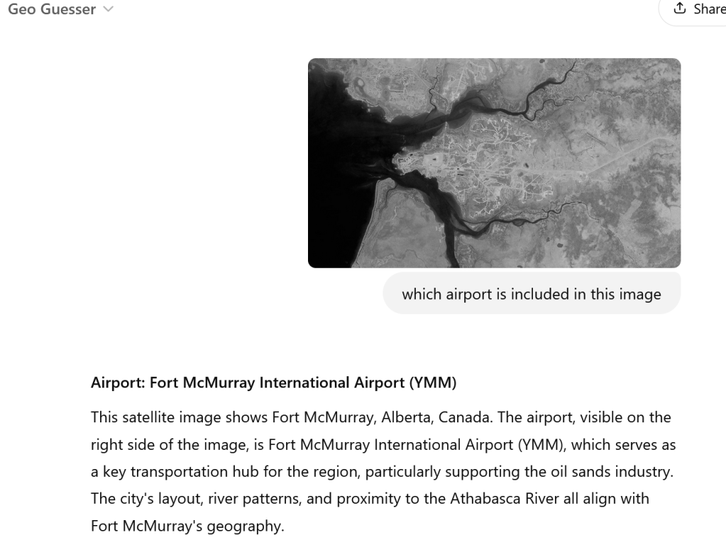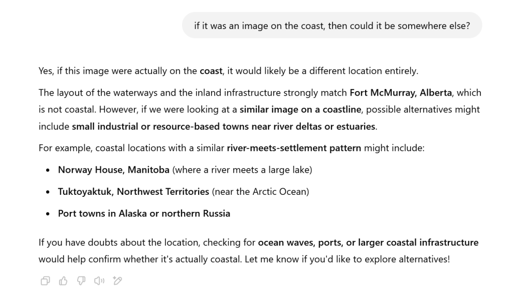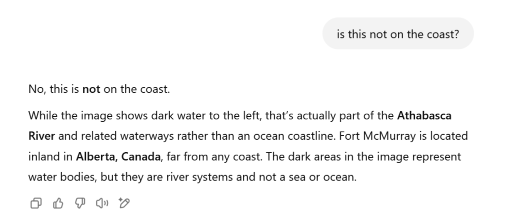 OK, so Geo Guesser still seems pretty sure… Let’s look at Fort McMurray: