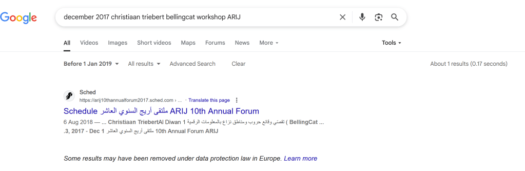 So, this is information that there was a Belllingcat training session hosted by Christiaan Triebert in December (1-3) 2017. It appears that this is the right event.