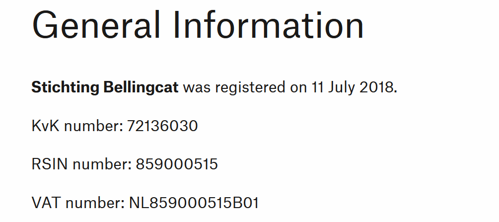 Running a quick Google, I swiftly located the Bellingcat About page (https://www.bellingcat.com/about/general-information/) which provides some really helpful information, including:
