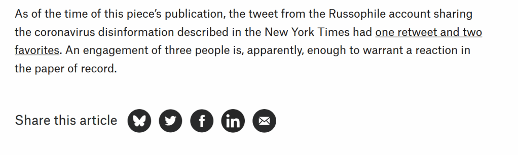 This would be the article dated 2020/04/15 (15 April 2020). This article was “How (Not) to Report on Russian Disinformation” (https://www.bellingcat.com/resources/how-tos/2020/04/15/how-not-to-report-on-russian-disinformation/)